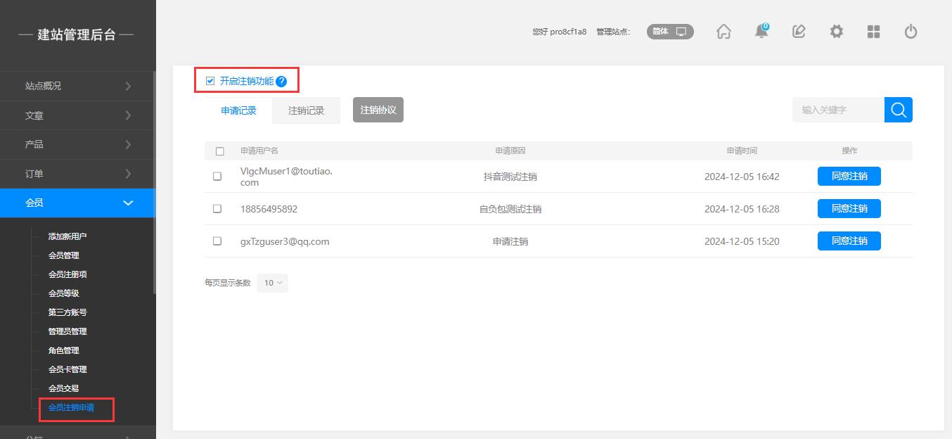 后台:会员 — 会员注销申请