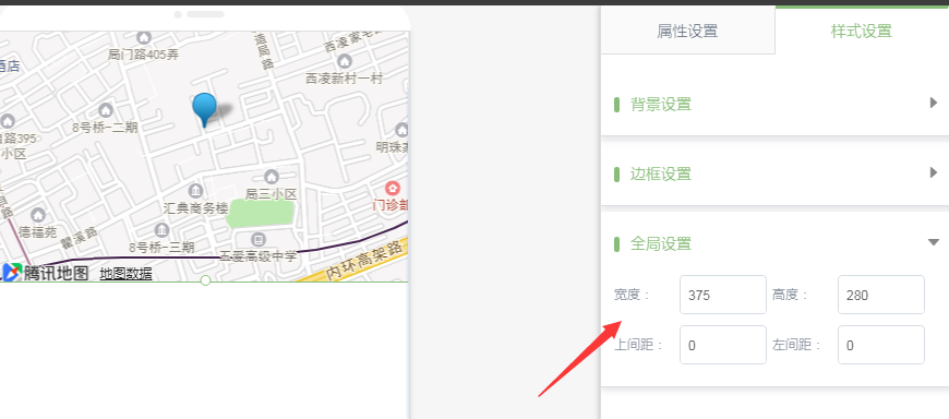 ②.左侧属性设置输入地址,或者直接输入经纬度